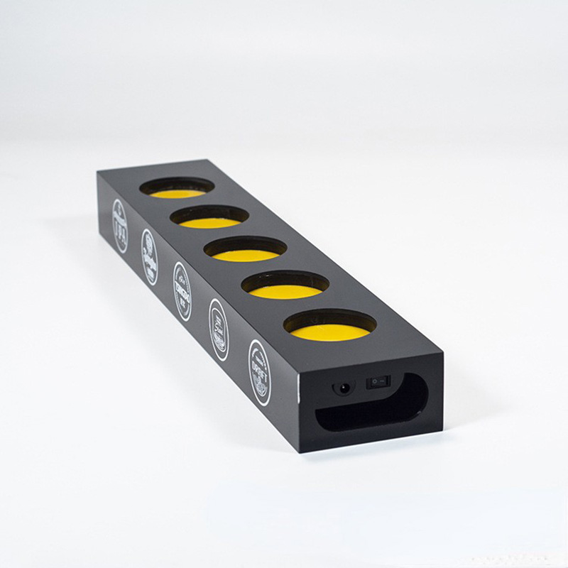 帶LED發光燈的一排5展位亞克力酒水展示架,憑借其合理的展位設計、迷人的燈光效果和優質的亞克力材質,成為了酒水商家提升展示效果、促進銷售的得力助手。選擇它,就是為酒水銷售增添一份獨特的競爭力。